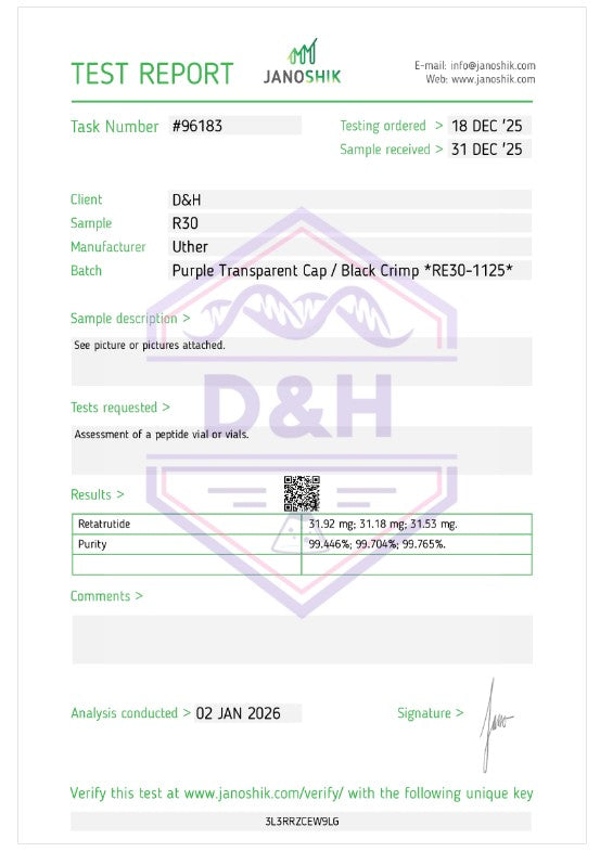 https://verify.janoshik.com/tests/85648-Retatrutide_30mg_7RU96U5I2AEF