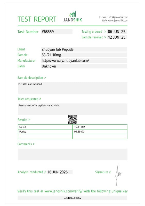 https://www.janoshik.com/tests/68559-SS31_10mg_7ZGBAGDFKE6V